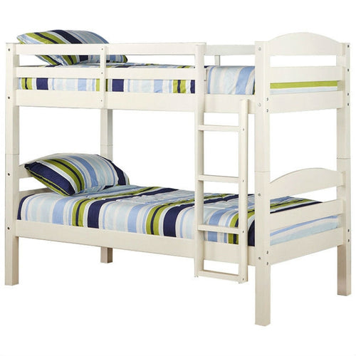 White Wood Twin over Twin Bunk Bed with Ladder and Guardrail