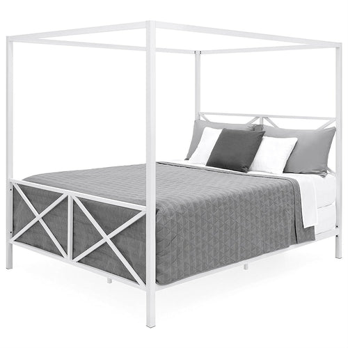 Queen size Modern Industrial Style White Metal Canopy Bed Frame