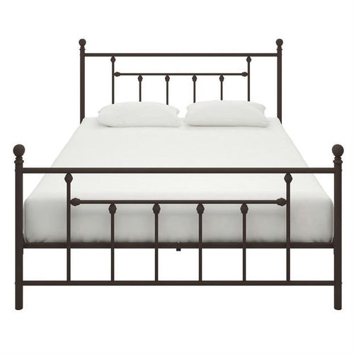 Queen Metal Platform Bed Frame with Headboard and Footboard in Bronze Finish