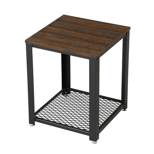 Modern Industrial Metal Wood Nightstand Side Table with Mesh Shelf
