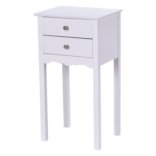 Elegant 2-Drawer End Table Nightstand Side Table in White Wood Finish